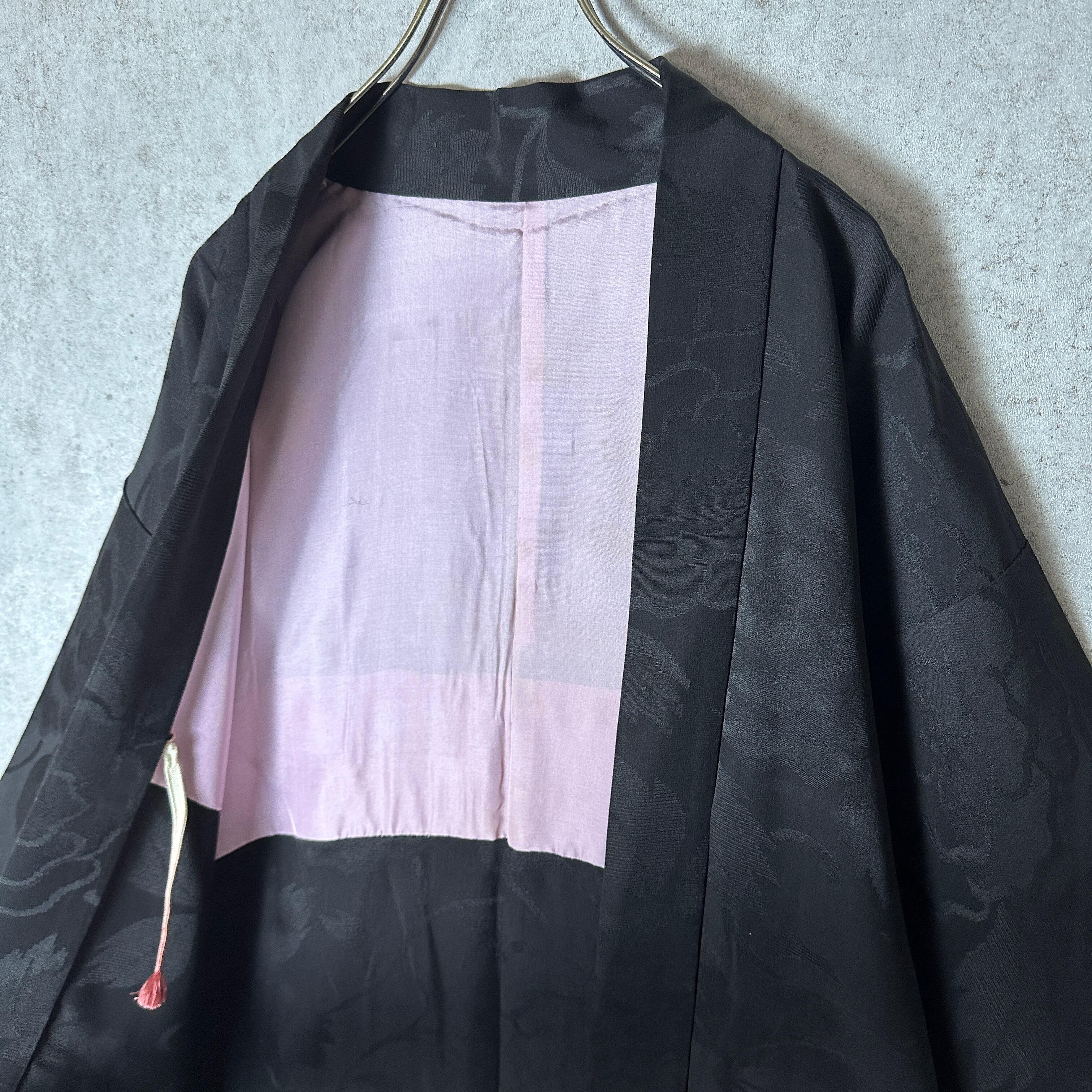 裏地には淡い桃色を配し、羽織った瞬間にちらりと見える色気が魅力。
